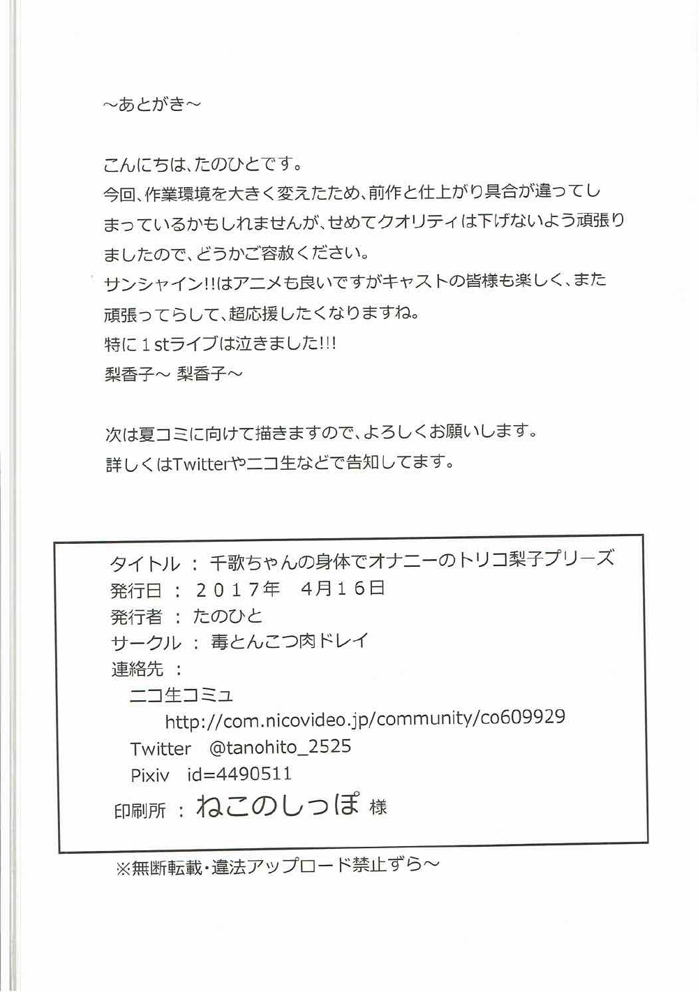 千歌ちゃんの身体でオナニーのトリコ梨子プリーズ