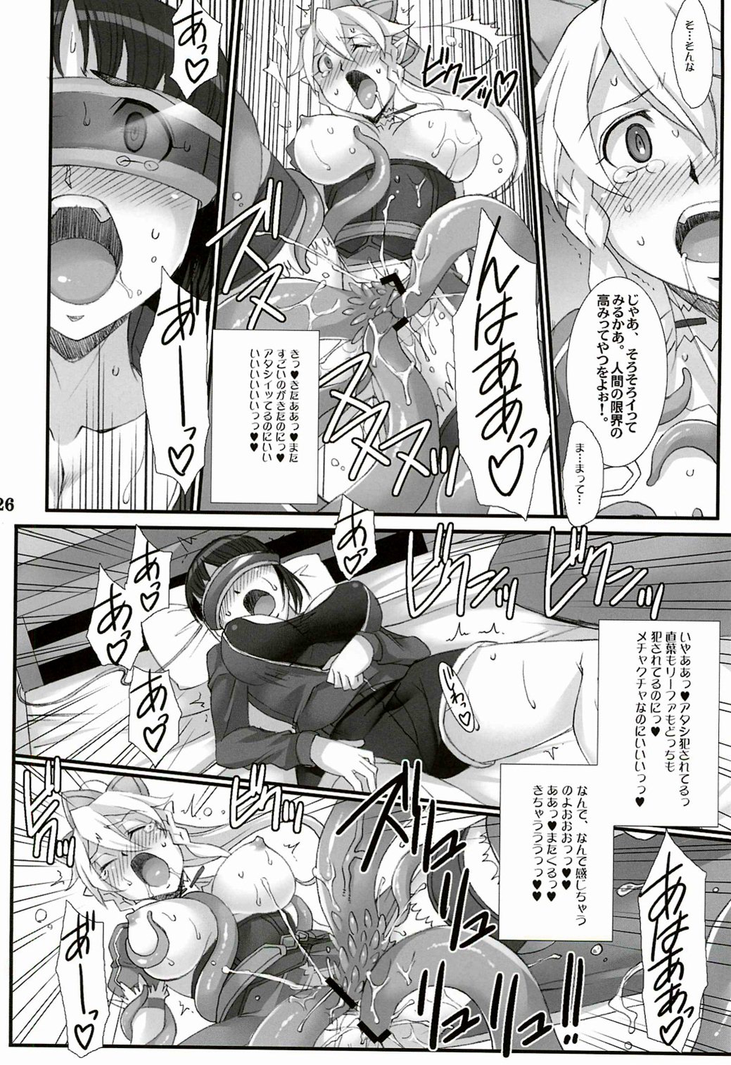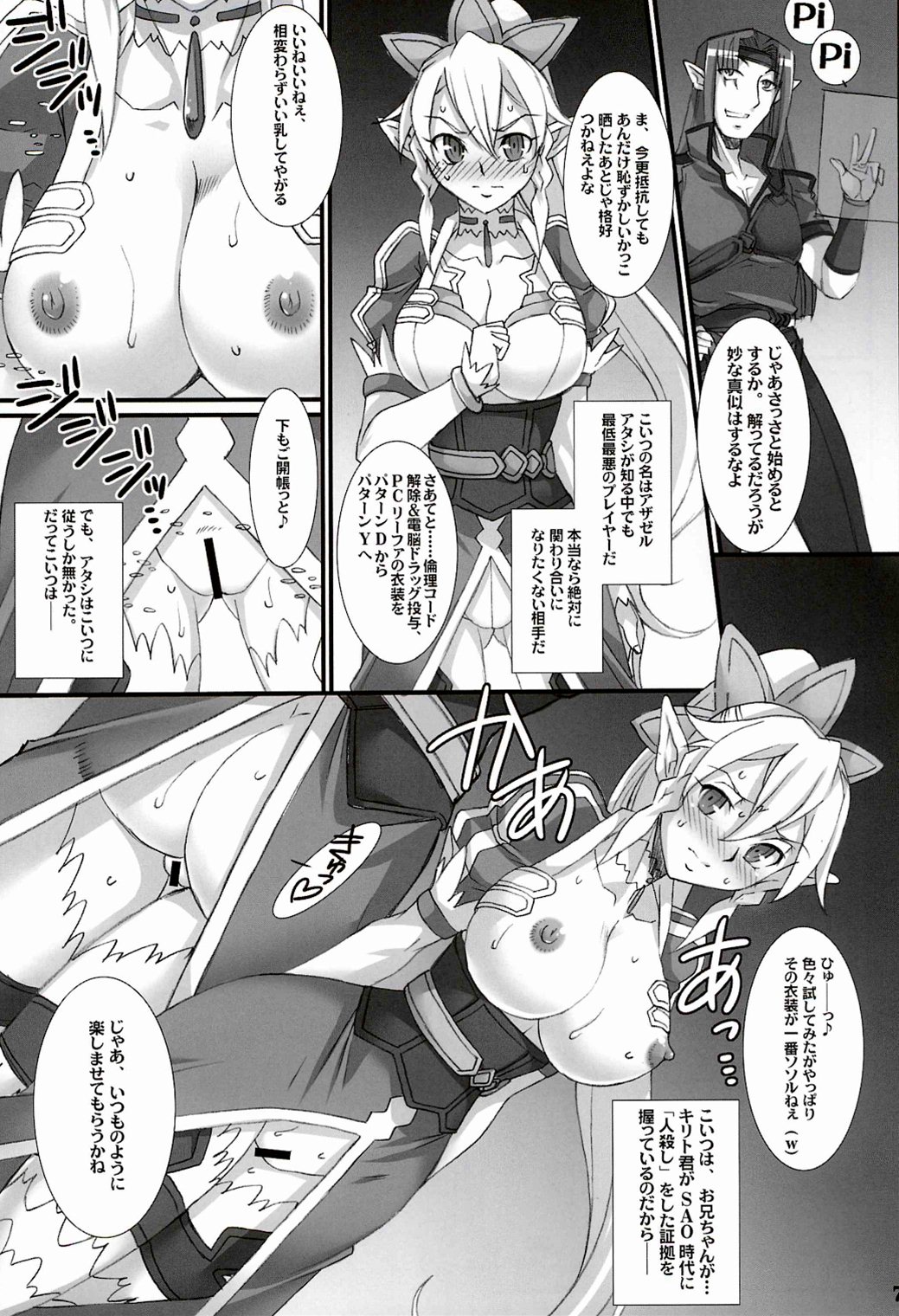 拘束されたシノンが二穴を責められてイったり…